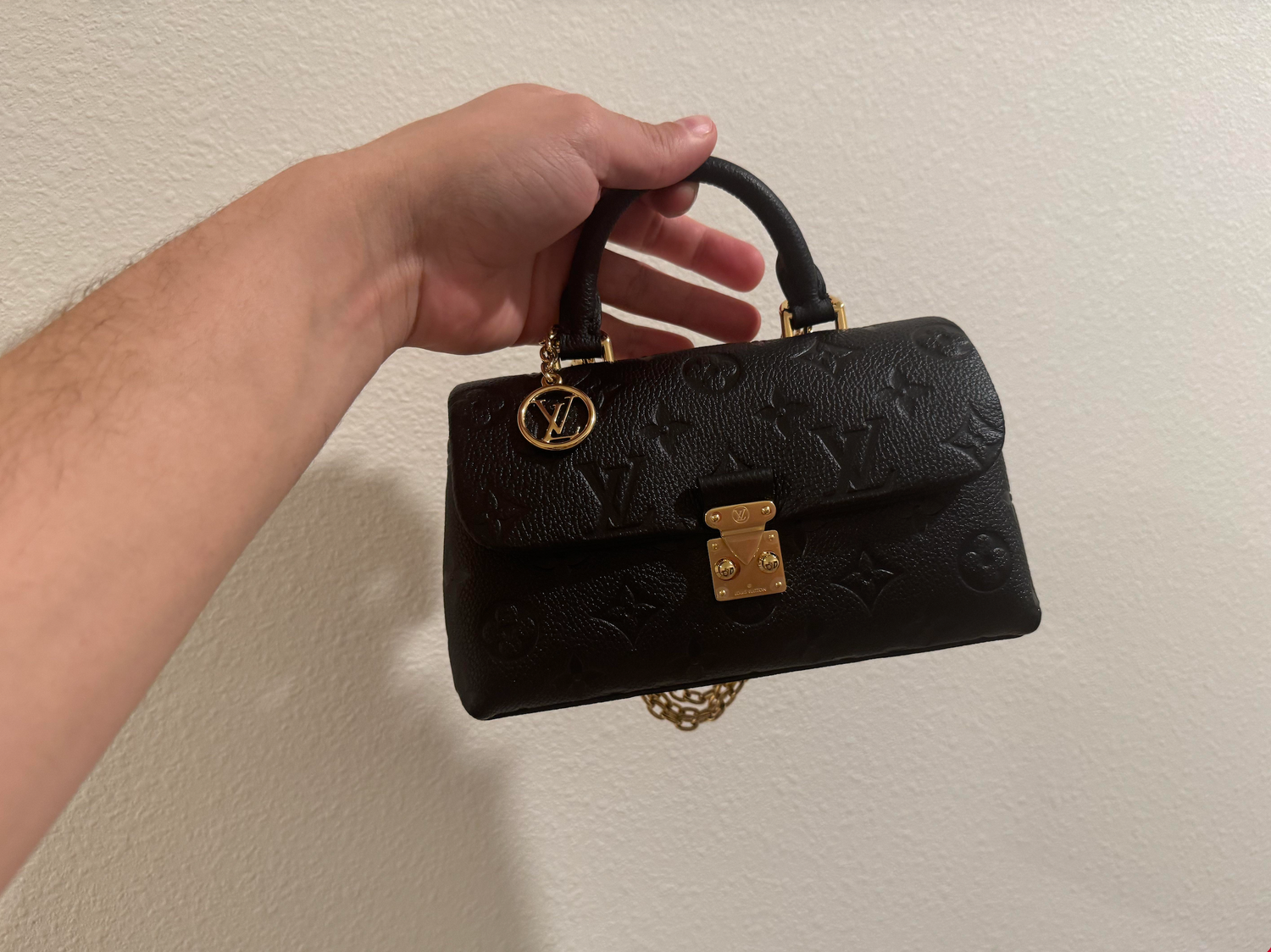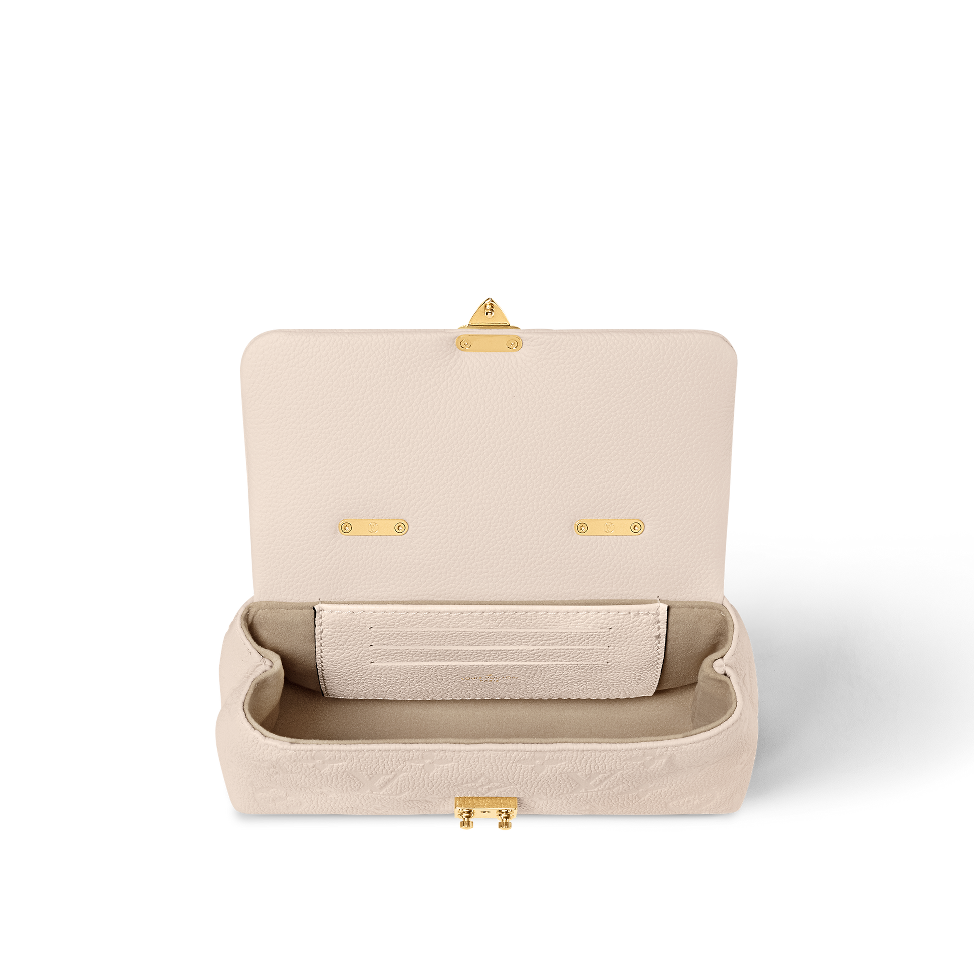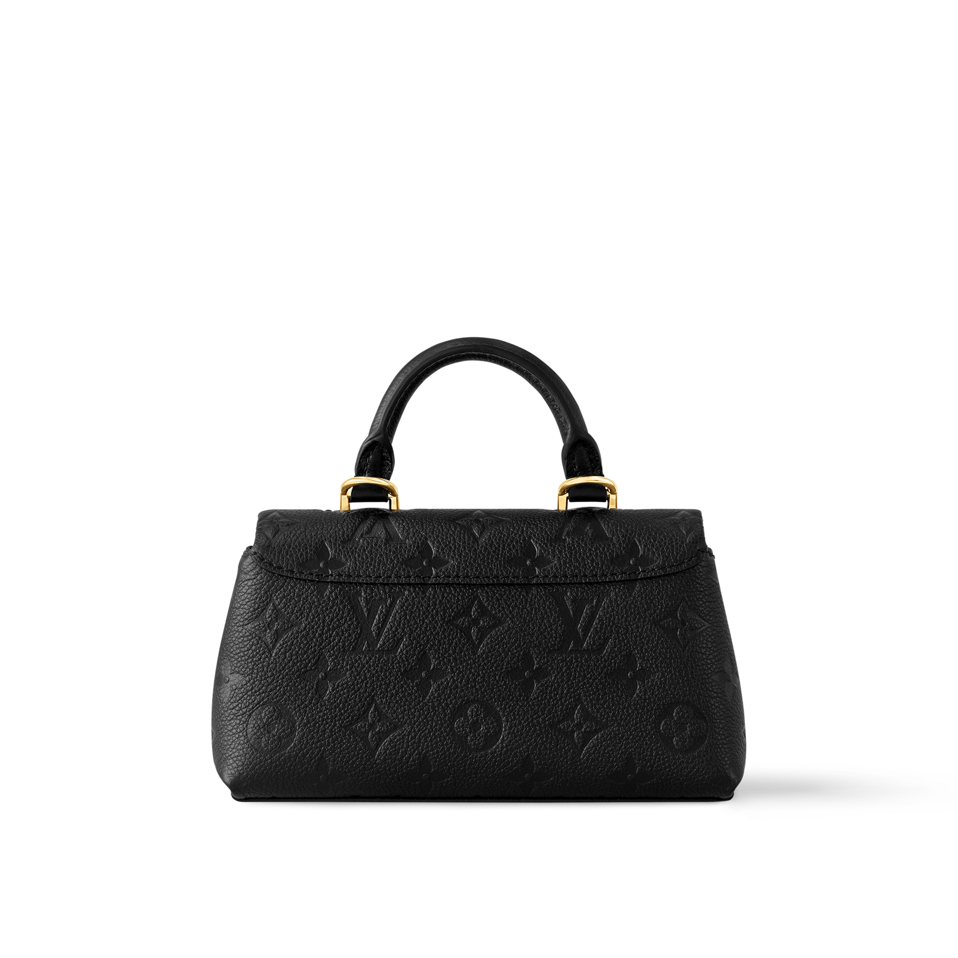 A mini top-handle bag in soft, grained leather embossed with the house’s signature pattern, cut in a slightly curved, structured shape. It closes with a gold-tone S-lock and comes with a detachable leather strap so you can wear it by hand, on the shoulder, or crossbody. Inside, a microfiber lining and card slots keep small essentials organized. Approx. size: 21 × 12.5 × 6 cm (length × height × width).